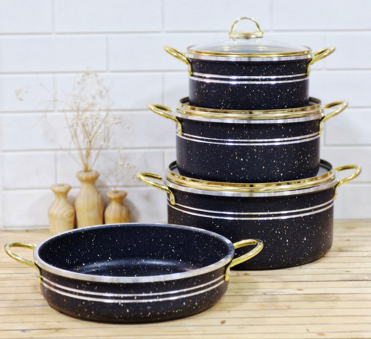 سرویس ۷پارچه دو رو گرانیت کیژان دسته طلایی قپه طلایی